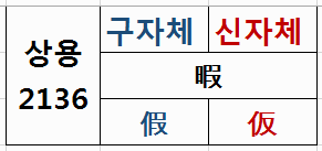 일본에서는 빨간색 한자체계를 구자체, 파란색 한자체계를 신자체라 부릅니다.